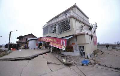 地面塌陷致民房开裂倾斜 地面塌陷坑遍布