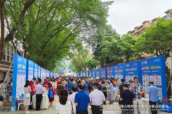 “地质灾害科普宣传”主题展位门庭若市(郑与国/摄)