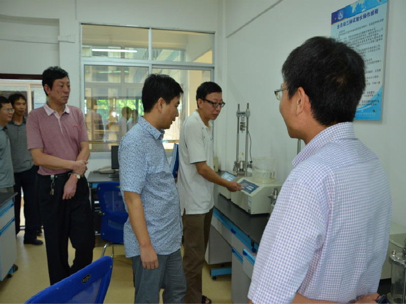 柳侃副主任随后全程陪同参观我院非饱和土试验室、常规土力学试验室、现代岩土力学试验室等。来宾一行对我实验室“先行”建设构思及运作进程、现代岩土力学设备使用等表示高度赞许,认为实验室仪器设备配置齐全、科研人员组成结构及专业优势明显,并期许今后与我重点实验室开展更多频次的技术交流与合作。