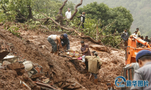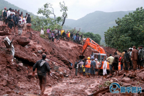 当地时间2014年7月30日,印度西部马哈拉施特拉邦的Malin村庄发生山体滑坡,目前救援工作正在持续进行中。据媒体报道,印度西部马哈拉施特拉邦因持续暴雨发生山体滑坡和泥石流,其中浦那区的一座偏远村庄遭受泥石流侵袭,地方官员说目前已有至少10人遇难,百余人遭掩埋。由于暴雨持续,救援困难,遇难人数可能进一步上升。