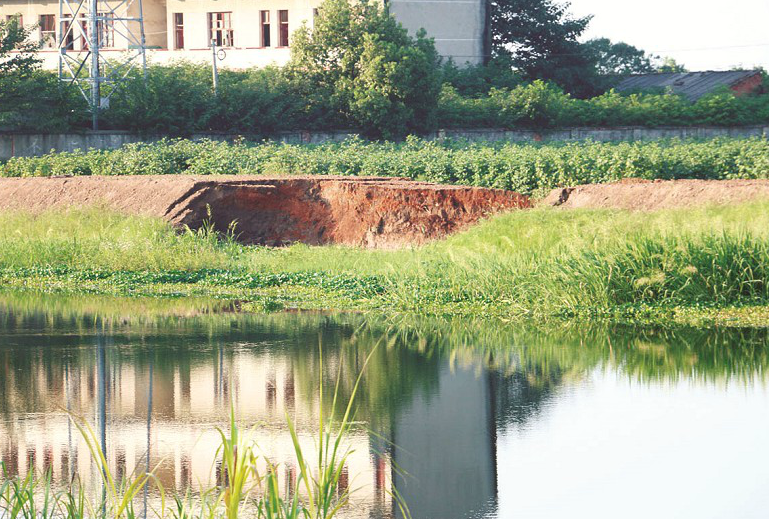 金水河岸堤塌陷坑