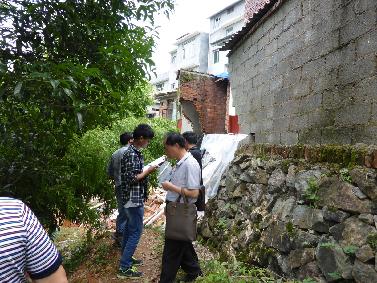 2015年5月25日始,重点实验室研究人员主动请缨赶赴“5.19”受灾严重的宁化县、清流县,开展突发地质灾害应急调查工作。技术人员分别对宁化县治平畲族乡、曹坊镇、安乐乡、方田乡、淮土镇、石碧镇、济村乡及翠江镇、城南乡、城郊乡和清流县龙津镇、嵩溪镇、嵩口镇、长校镇、温郊乡、田源乡、里田乡共17个重灾乡镇进行实地调查。因灾损严重,部分道路还在抢修中,技术人员一行就步行数公里深入自然村地灾点调查,并现场提出相应的防治措施建议。同时,结合应急抢险救灾和工程治理同步实施的需要,重点实验室立即开展风险大的地质灾害点治理工程可行性研究,积极协同地方政府行政管理部门向部委、省厅申请地灾治理专项资金,确实保障当地受灾群众的生命财产安全。