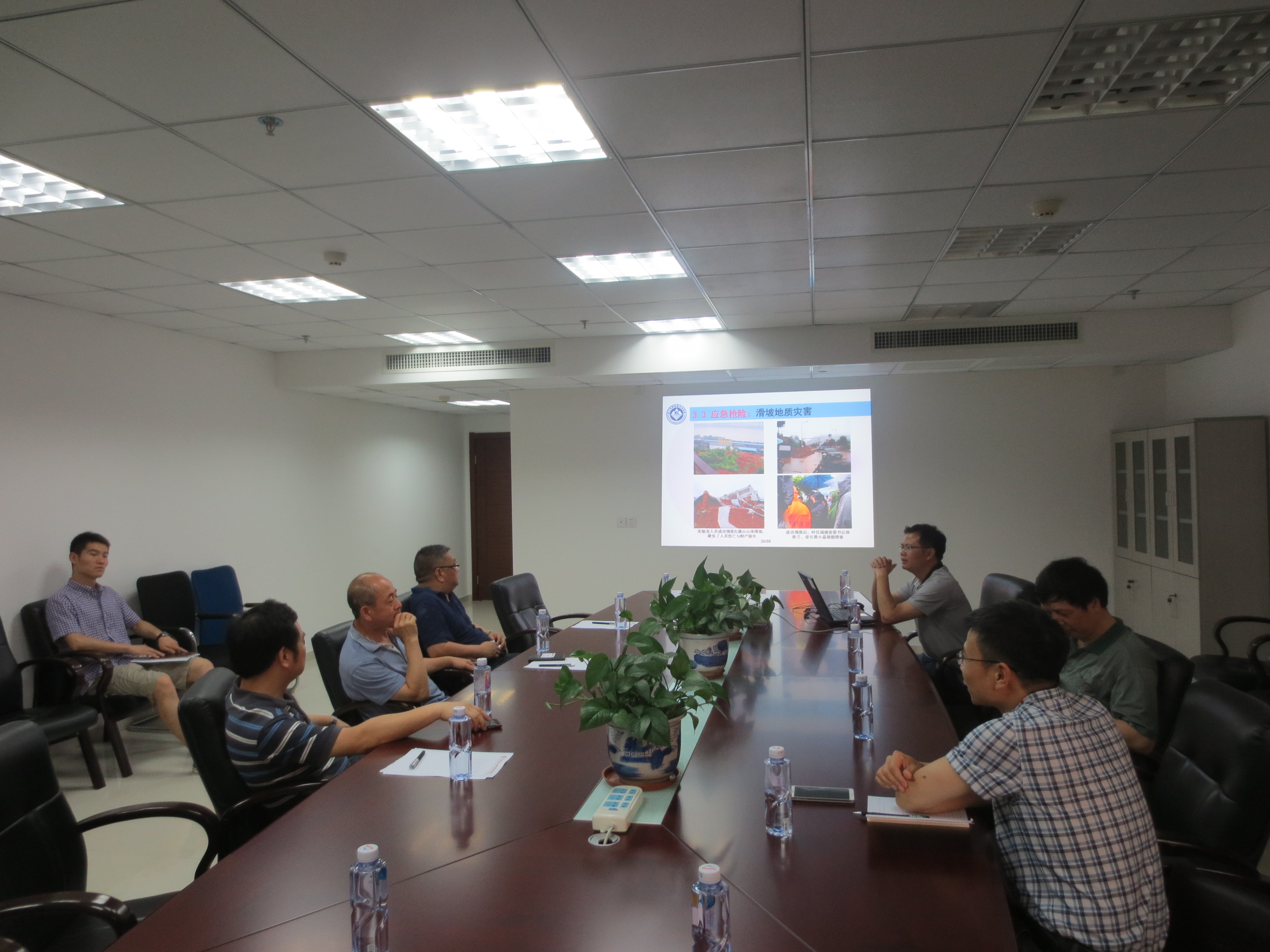 实验室固定研究人员向中国地质环境监测院田廷山副院长汇报实验室进展