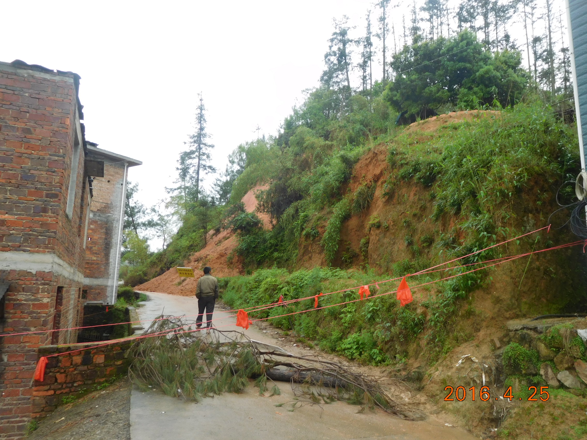 2016年4月24日,再赴大田县石牌镇石牌村、广平镇元沙村等地开展突发岩质崩塌灾情、土质滑坡险情应急调查,指导石牌村应加强封闭警戒,元沙村尽快采取分级削坡减载和坡后截排水综合降险处理。