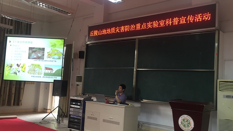 围绕福建省科技活动周“创新引领 共享发展”活动主题,结合“5.12防灾减灾日”,以及国土资源部丘陵山地地质灾害防治重点实验室(福建省地质灾害重点实验室)的定位和目标,重点实验室于2016年5月11日下午,联合福州教育学院附属第三小学开展地质灾害科普知识讲座活动。
