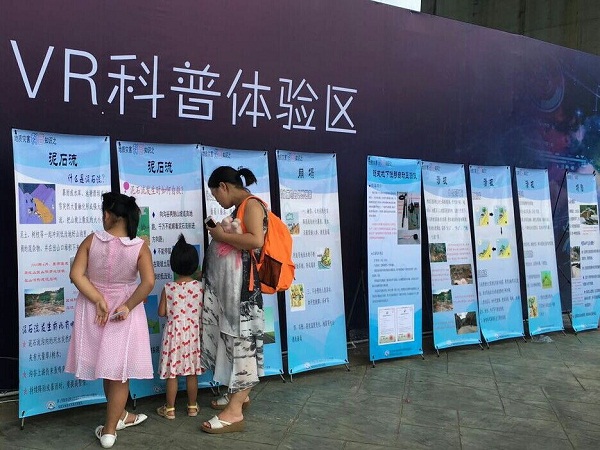 今年科普日活动以“创新放飞梦想,科技引领未来”为主题,活动现场设置了“虚拟现实、智慧生活、炫彩科普、感触科学、科学大观园”等五大板块。活动当天,重点实验室协同福建省地质学会在展位上布置了许多展板,向福州市民宣传地质灾害基本知识、展示地灾监测预警最新技术。此外,还精心准备了印有地灾科普知识的凉扇、装有地灾宣传材料的环保袋等。