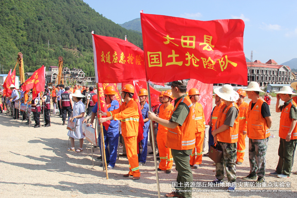 省地质灾害重点实验室作为大田县地灾应急技术支撑单位,派出专业地灾应急技术人员参演,运用手持GPS定位、无人机航拍等专业勘察技术手段,调查崩塌发生区域,评价崩塌发育特征、影响范围、灾体及稳定性等,为下一步救灾治理工作提出科学合理化建议。