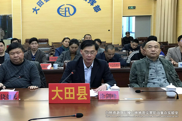 会议由县水利局局长田仁芳主持,副县长涂剑峰部署工作并作动员讲话。其后,分别由三明市防汛办邓名春作“基层防汛防台风工作要领”、三明市气象局局长沈永生作“大田县气象灾害特征及预警识别”讲座。我室饶如龙高工此次特别应邀赴会作《地质灾害识灾防灾与应急处置》专题讲座,介绍地质灾害临灾前兆及应急处置方法、村镇规划建设避灾要点等,取得良好成效。
