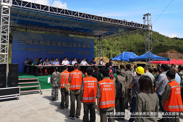 6月18日上午,三明市2020年地质灾害防治技术演练在清流县城南工业园区举行,三明市、清流县、龙津镇各级人民政府和自然资源部门、各参演单位约200人参加。自然资源部丘陵山地地质灾害防治重点实验室作为演练技术支撑单位之一参演。