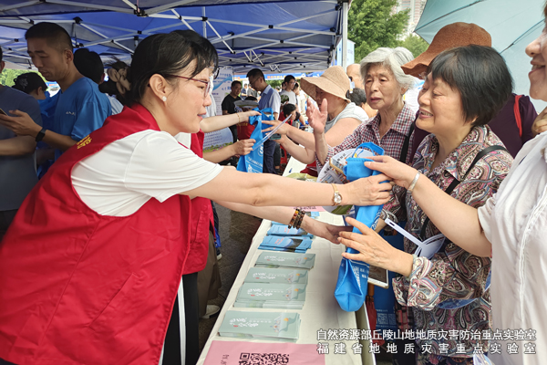 地质灾害重点实验室在现场开展“地灾防治和地灾应急疏散逃生知识宣传”志愿服务活动,通过展示我省重大地质灾害案例实景照片、讲解逃生避险要诀图解、咨询答疑等方式同市民群众亲切互动,并赠送地灾防治科普知识宣传手册、环保袋、雨伞等宣传品500余份,将防灾逃生实用“干货”送到群众身边,进一步提升社会基层防灾减灾意识和能力,营造“防灾减灾人人有责,逃生避险人人掌握”的良好氛围。