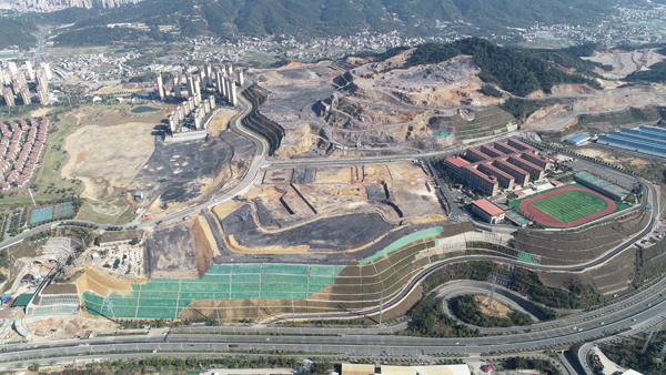 我国山多地少、建设用地相对匮乏,山区的工程建设多采用现场开挖的土石混合料就地回填整平,经常形成高达数十甚至上百米的填方边坡。地灾重点实验室联合河海大学、重庆大学、江苏科技大学等多家科研院所,针对大型填方工程开展土石混合料力学参数测定、高填方边坡变形和稳定性评价、高边坡支护设计等技术攻关,研发了成分差异大、粒径悬殊的土石混合料力学参数的原位精准测定方法,将以往过于依赖经验或常规试验的参数取值手段提升至可靠的原位测试层面,改进了计算理论,优化了设计方案,大幅节约工程造价的同时,解决了边坡稳定性提高、自然资源集约利用、生态环境保护等多个关键堵点,实现了社会、经济和生态效益的多赢。成果应用于多项工程,其中,龙岩紫金山公园废弃煤矿综合治理及再造建设用地项目多次作为正面案例登上央视新闻联播。
